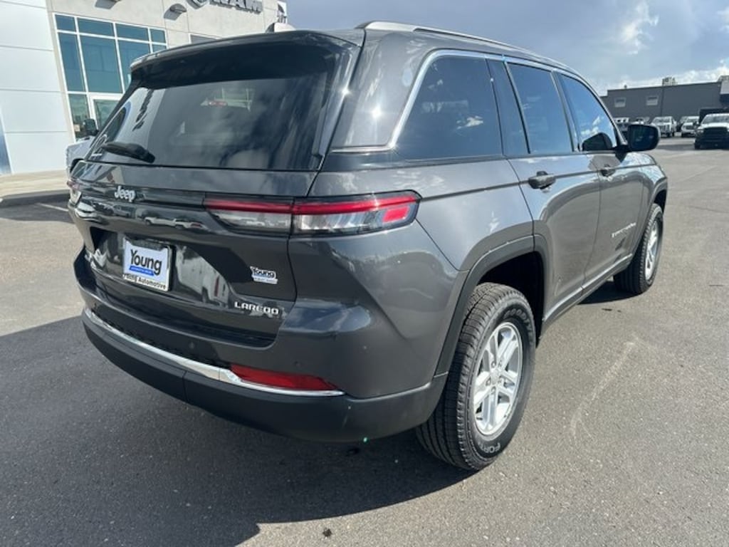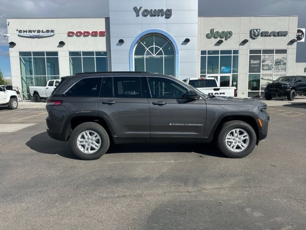 Baltic Gray Metallic Clearcoat 2025 Jeep Grand Cherokee Laredo 4WD 8-Speed Automatic 3.6L V6 24V VVT 19/26 City/Highway MPG NON SMOKER, REAR CAMERA, APPLE CARPLAY/ANDROID AUTO, BLUETOOTH, 4WD, 115V Auxiliary Power Outlet, 4-Wheel Disc Brakes, 6 Speakers, ABS brakes, Air Conditioning, Alloy wheels, AM/FM radio: SiriusXM, Anti-whiplash front head restraints, Automatic temperature control, Brake assist, Bumpers: body-color, Cloth Seats, Compass, Delay-off headlights, Driver door bin, Driver vanity mirror, Dual front impact airbags, Dual front side impact airbags, Electronic Stability Control, Emergency communication system, Four wheel independent suspension, Front anti-roll bar, Front Bucket Seats, Front Center Armrest w/Storage, Front dual zone A/C, Front License Plate Bracket, Front reading lights, Fully automatic headlights, Heated door mirrors, Heated Front Seats, Heated Steering Wheel, Illuminated entry, Knee airbag, Low tire pressure warning, Luxury Tech Group I, Model Year Tracking, Normal Duty Suspension, Occupant sensing airbag, Outside temperature display, Overhead airbag, Overhead console, Panic alarm, ParkView Rear Back-Up Camera, Passenger door bin, Passenger vanity mirror, Power door mirrors, Power driver seat, Power Liftgate, Power steering, Power windows, Quick Order Package 23A Laredo, Radio data system, Radio: Uconnect 5 w/8.4" Display, Rain Sensitive Windshield Wipers, Rear anti-roll bar, Rear reading lights, Rear window defroster, Rear window wiper, Remote keyless entry, Remote Start System, Satellite Radio, Secondary Active Grille Shutters, Security system, Selectable Tire Fill Alert, Speed control, Speed-Sensitive Wipers, Split folding rear seat, Spoiler, Steering wheel mounted audio controls, Tachometer, Telescoping steering wheel, Tilt steering wheel, Traction control, Trip computer, Variably intermittent wipers, Voltmeter, Wheels: 17" x 6.5" Fully Painted Aluminum, Wireless Charging Pad. Price includes: $1000 - 2025 National Grand Cherokee Loyalty Retail Bonus Cash . Exp. 11/03/2025 $1000 - Driveability / Automobility Program. Exp. 01/05/2026 $1750 - 2025 National Retail Bonus Cash . Exp. 11/03/2025 $500 - 2025 National 2025 First Responder Bonus Cash. Exp. 01/05/2026 $500 - 2025 National 2025 Military Bonus Cash. Exp. 01/05/2026 $500 - 2025 National Jeep Monopoly Money Bonus Cash . Exp. 11/03/2025